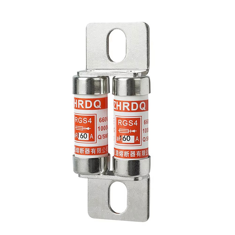Uporabljamo standardno debelino bakrene srebrne hitre varovalke RGS4, ki ima dobro prevodnost. Uporabljamo visokokakovostno keramično telo in napolnjen kremenčev pesek, ki je bil kemično obdelan, da se zagotovi odlično odvajanje toplote in gašenje oblokov. 660-1000V vijaka lahko uporabimo tudi za polprevodniške komponente in zaščito pred kratkim stikom (AR) in motorično zaščito (AM), z nazivno napetostjo do 1000V, nazivnim tokom 160A in delovno frekvenco 50Hz. Nazivna zmogljivost lomljenja 660-1000V vijakov je do 80Ka, kar je v skladu s standardi GB13539 in IEC269.