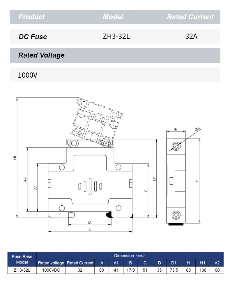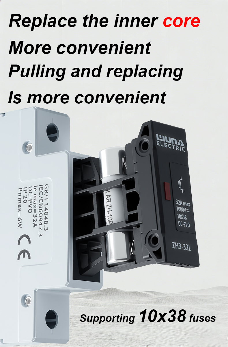 Nosilec varovalke ZH32L DC 1000 V je visoko zmogljiva komponenta, zasnovana za zagotavljanje zanesljive zaščite električnih tokokrogov v fotovoltaiki in drugih aplikacijah z enosmernim tokom. Nosilec varovalke ZH32L DC 1000 V, ki se ponaša z robustno konstrukcijo in vrhunsko izolacijo, je primeren za varno namestitev varovalk do 1000 V DC, kar učinkovito preprečuje poškodbe zaradi prevelikega toka in kratkega stika.